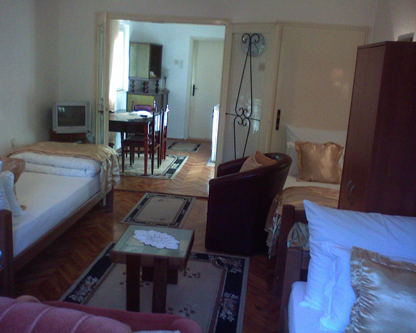 Apartman je predviđen za smeštaj do 4 osobe, spavaća soba ima četiri odvojena ležaja, dve terase, TV, wi-fi internet i klima uredjaj. Kuhinja je potpuno opremljena, a apartman se nalazi na prvom spratu kuće.