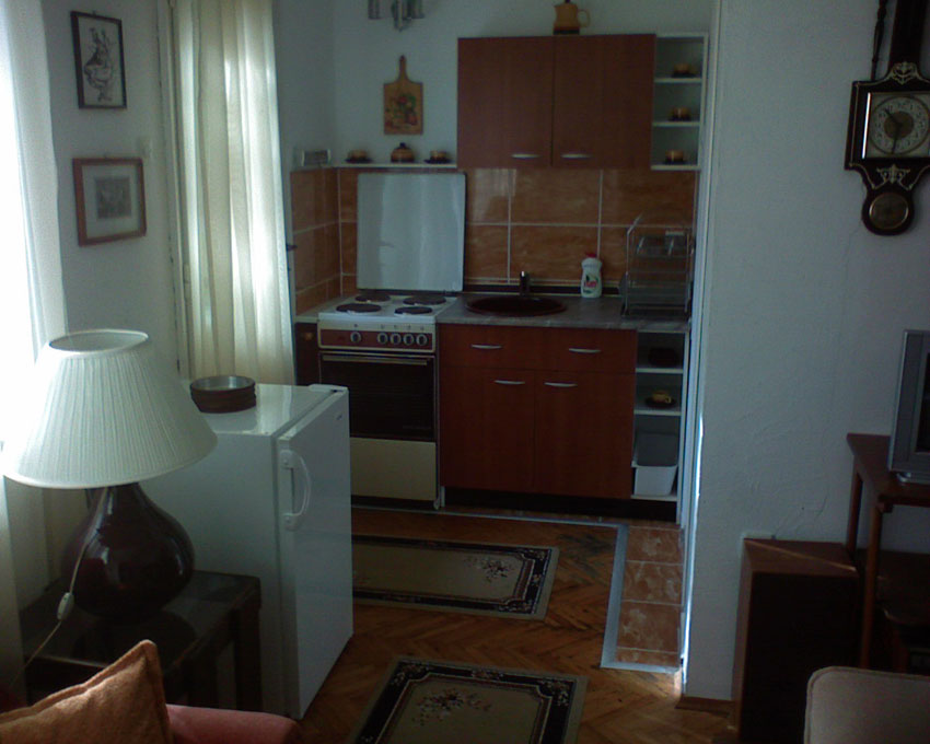 Apartman je za smeštaj do 4 osobe, ima četiri odvojena ležaja. Kuhinja je potpuno opremljena, ima i svoj deo dvorišta sa ligištulima i